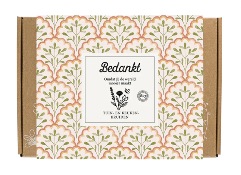 Prijs incl. btw: € 10,95Deze Gift Box Small is gevuld met 7 Tuin- en keukenkruiden Blossombs. Zo groeien jouw kruiden binnen, buiten en waar je ook wil! Perfect om een deel voor in de keuken te…€ 10,95